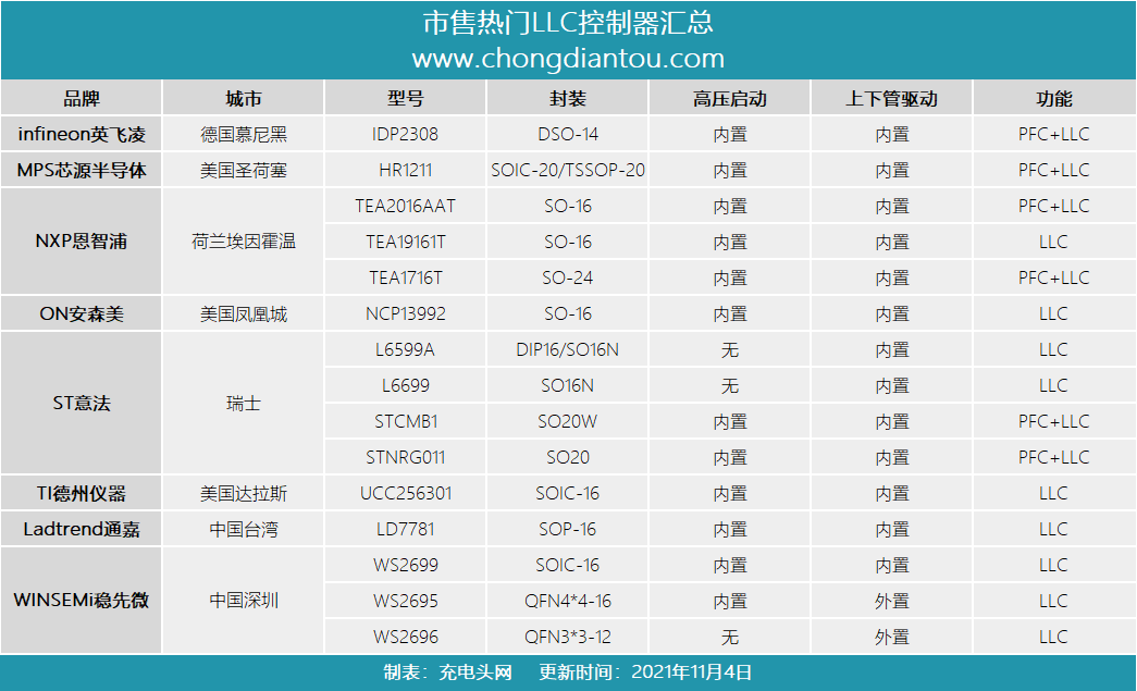 以下为大家整理了一批市售热门LLC控制器以及应用案例解析,排名不分先后,仅按品牌英文首字母排序。