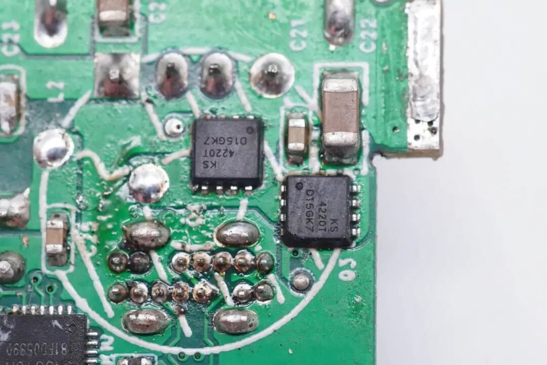 每颗智融SW3516H外挂两颗冠禹KS4220T MOS管输出同步整流降压。