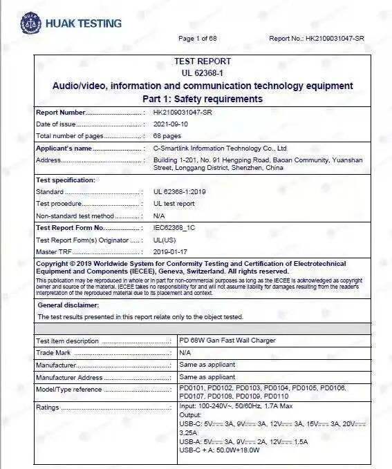 还通过了UL 62368-1认证。