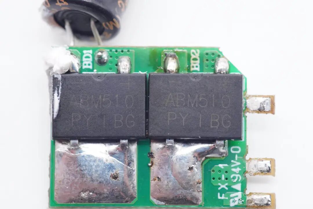 ABM510整流桥特写,采用两颗以均摊发热。