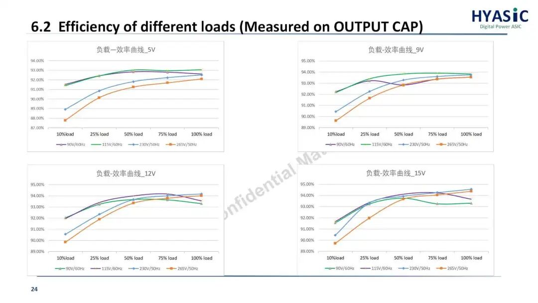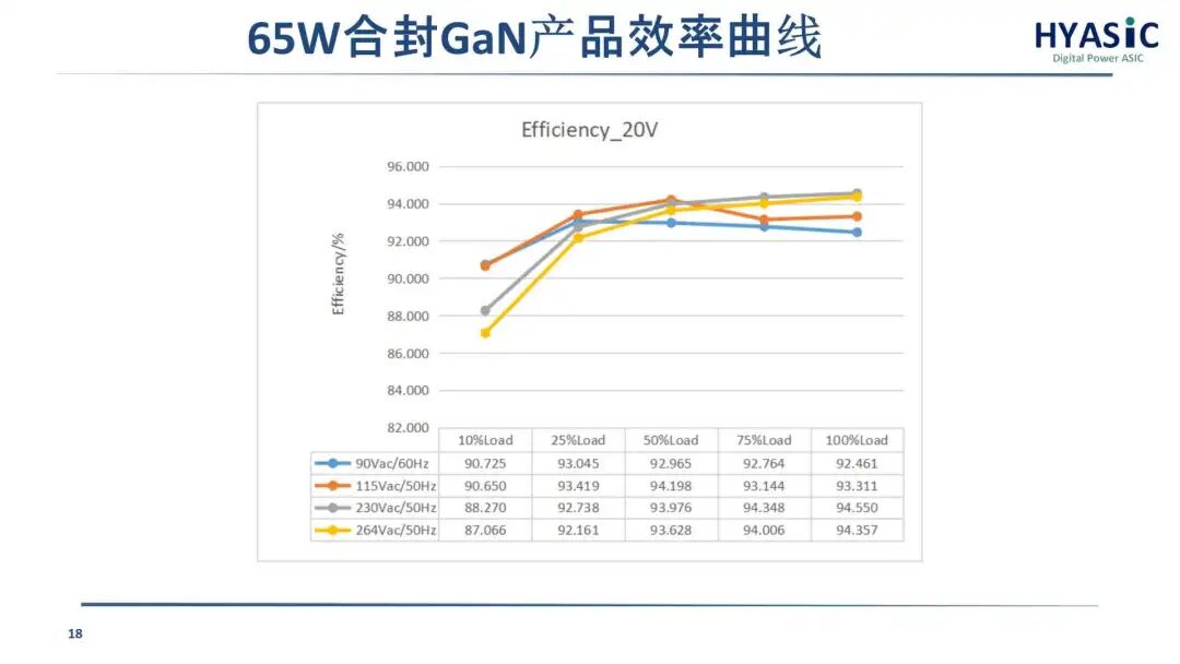 华源半导体65W合封GaN产品效率曲线,最高可到94%以上。