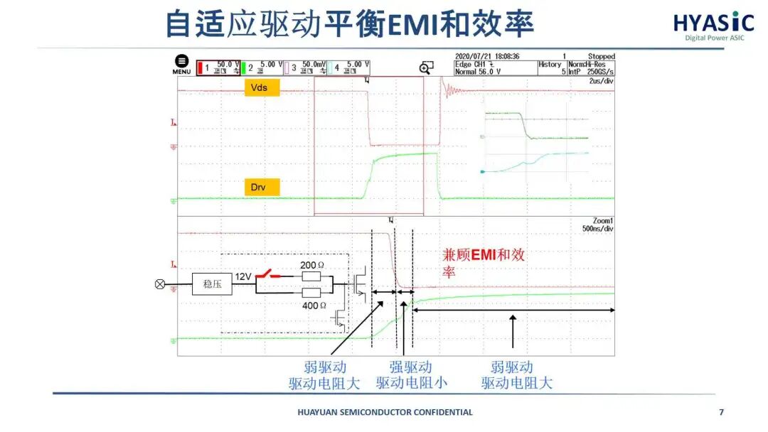 在核心技术层面,郭春明先生介绍了两种,其中一种是自适应驱动技术,可以平衡电源系统的EMI和效率。