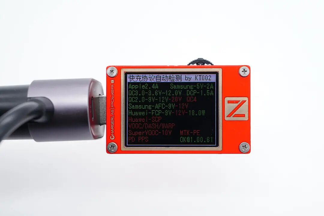 使用ChargerLAB POWER-Z KT002测得车充C口支持Apple 2.4A、Samsung 5V2A、DCP协议,以及QC2.0/3.0、FCP、SCP、PE2.0、PD3.0快充协议。