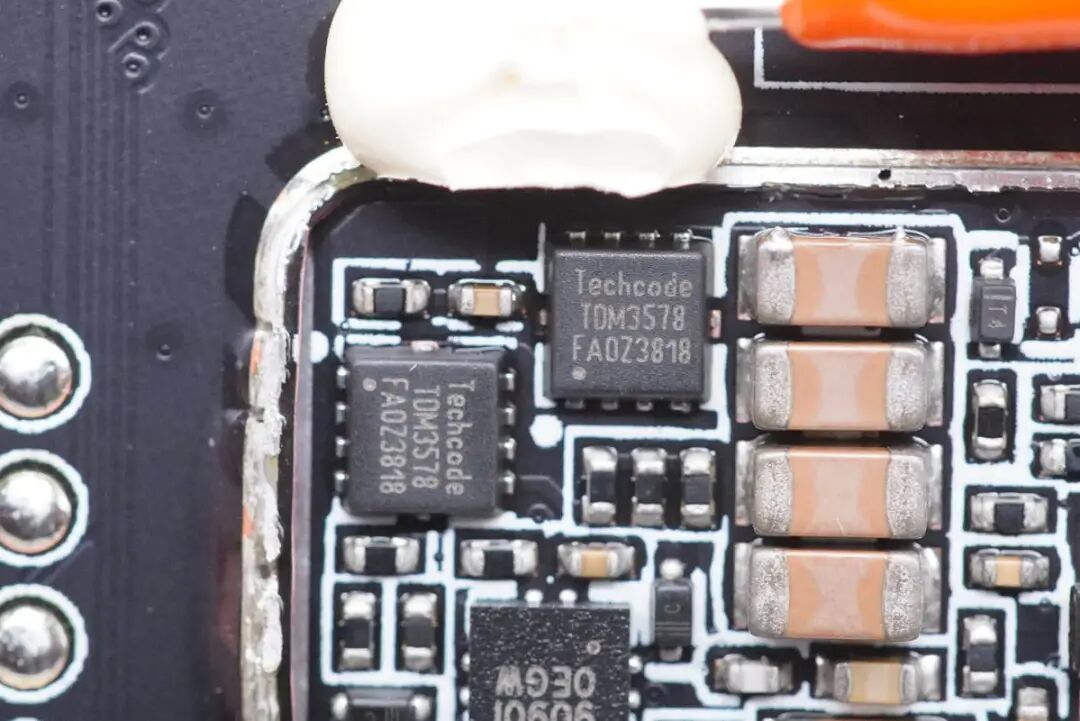 两颗泰德TDM3578 MOS管特写,用于驱动无线充电线圈。