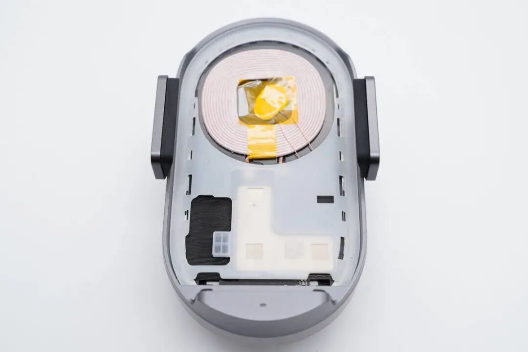 除无线充电路外,电路板上还设有麦克风以及蓝牙连接功能,但官方宣传页面确只字不提,或许是还没有完善,若后续真能通过升级实现手机APP以及语音控制,产品将会更加智能,用户使用体验可进一步提升。