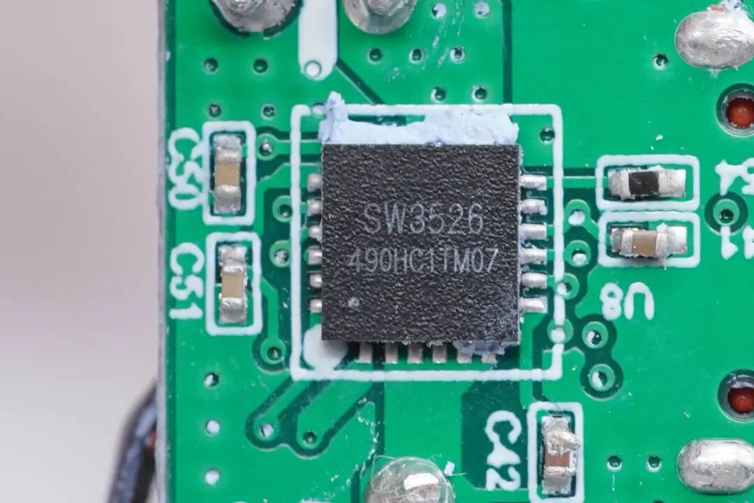 C3和C4口两路的降压协议IC都是智融SW3526。这是一颗高集成度的多快充协议充电芯片,内置降压MOS,外围精简,可以支持USB-C口或者USB-A口输出控制。