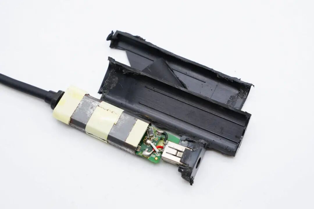 内部PCB小板包裹散热片,两侧卡扣以及粘贴胶带固定。