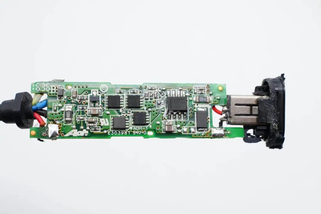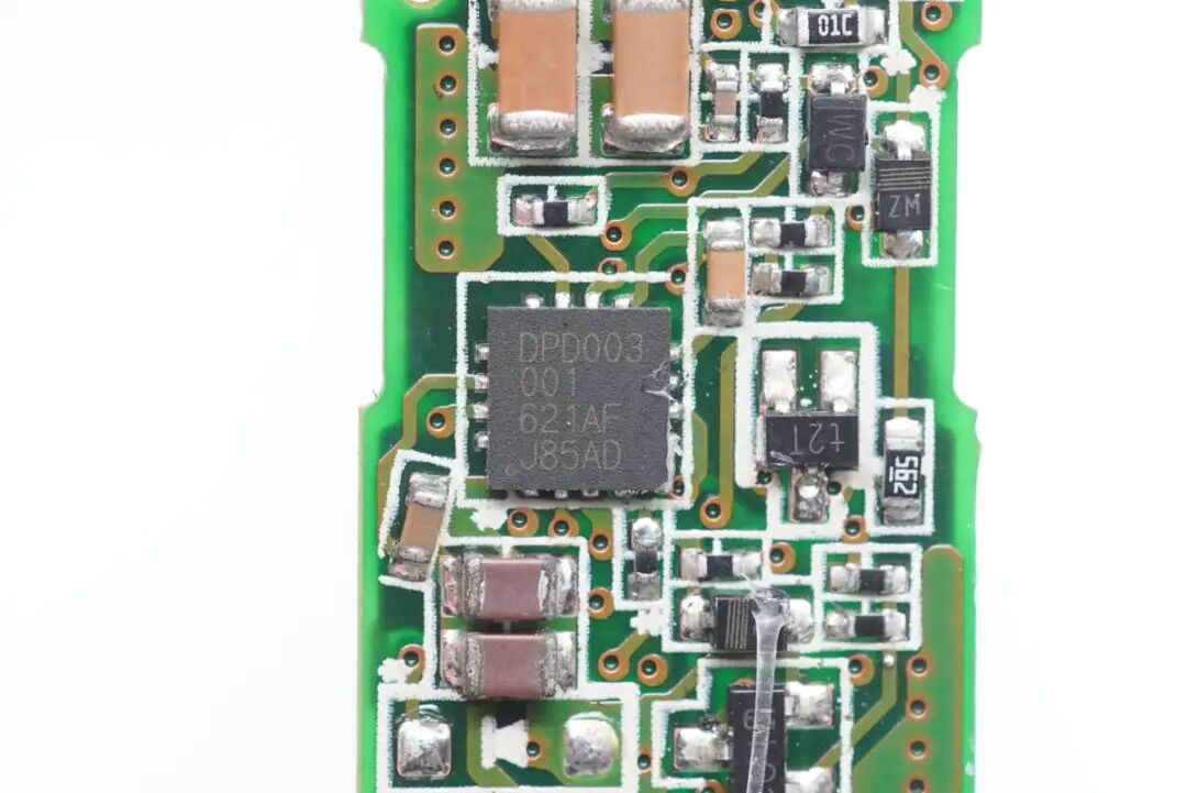 充电头网通过拆解发现,转接头的核心调压电路设在了DC输入一端内部小板上,采用了德州仪器TPS54335A降压芯片,输出电压通过东芝MOS切换,还采用一颗DPD003协议芯片控制输出。另一端拆开发现没有重要器件,主要设有LED指示灯,小板和线芯注塑保护。