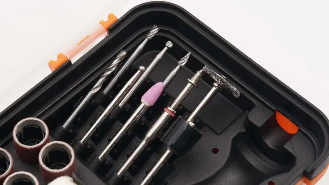 附带有一个砂圈打磨头、一个研磨头、一个金刚磨针头、一根钻头等。