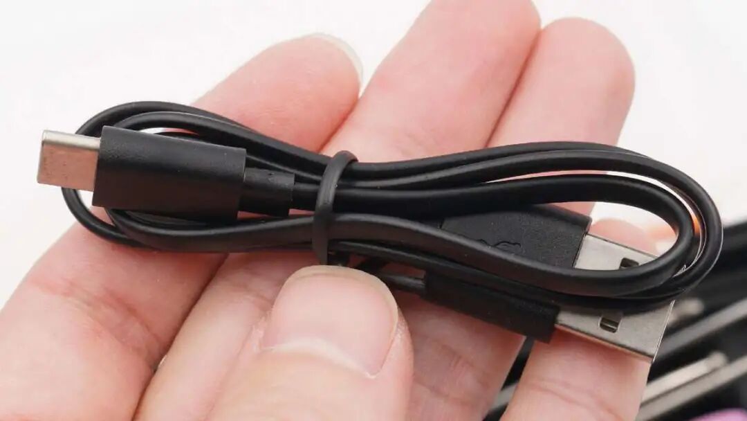 USB-C口特写,黑色胶芯不露铜。