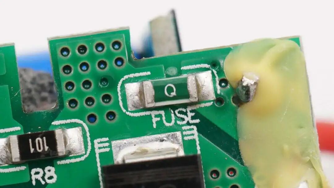 贴片保险丝特写,用于输入过流保护。