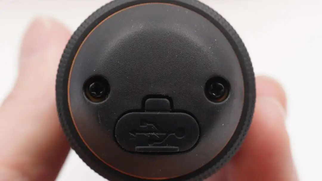 底部设有USB-C充电口,设有防尘胶塞保护。