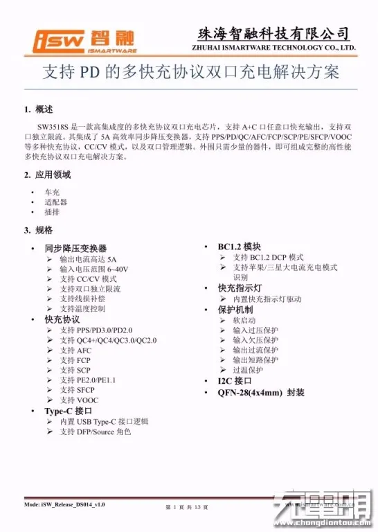 智融SW3518S详细规格资料。