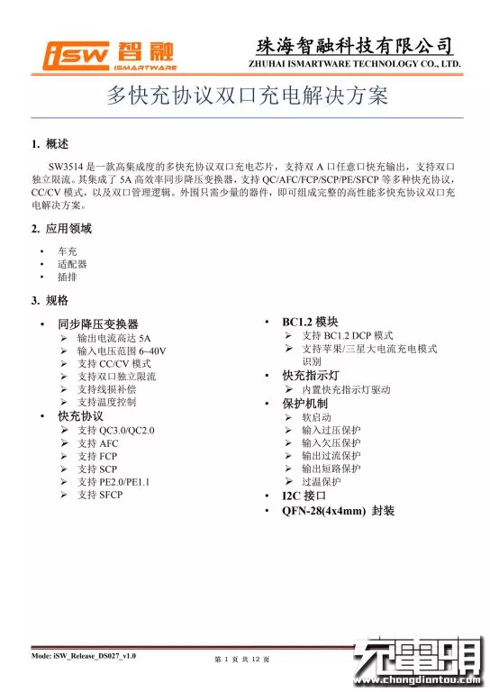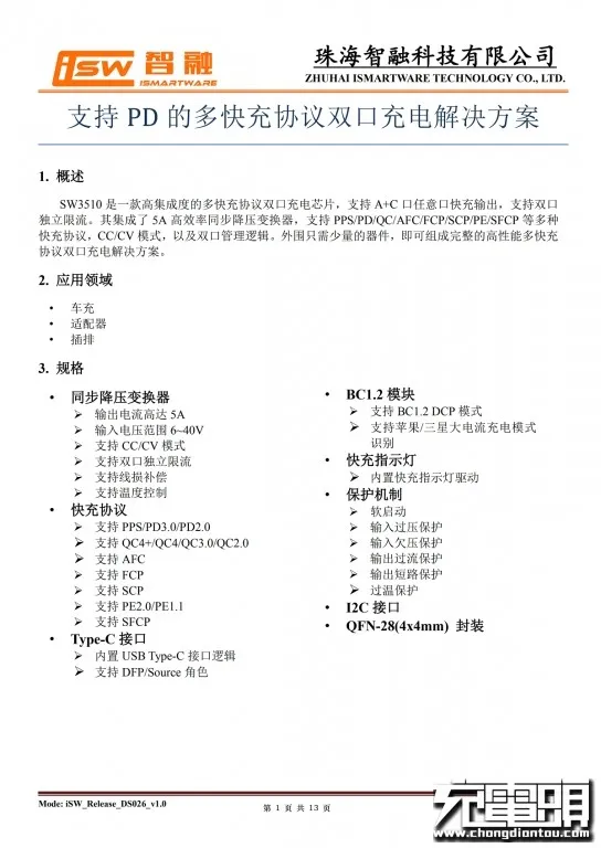 智融SW3510详细规格资料。