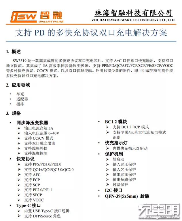 智融SW3519规格资料。