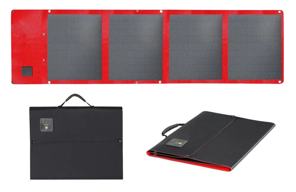 Sunpower太阳能折叠包(100W)采用高转换率23.5%-24%,PET压层,透光度92%,耐腐蚀防水和防火,压层后厚度仅为3mm,2段式折叠设计收纳后与携带更方便。最大输出功率高达100W,USB + DC接口配置,支持QC3.0快充输出。