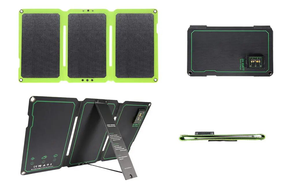 ETFE太阳能折叠包(24W)采用单晶硅硅片,ETFE压层,透光度95%,耐腐蚀防水和防火,三段式折叠设计便携小巧,带有收纳式支架,可方便调整角度有效吸收阳光。最大输出功率24W,支持QC3.0快充输出,双USB接口配置。