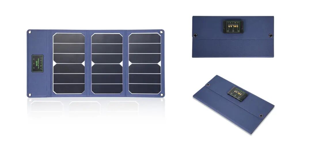 一体热压折叠包(21W)峰值功率为21W,采用Sunpower cell硅片制作,卓越的耐摩擦的PET压层,拥有耐刮伤、耐化学试剂和耐家用清洁剂性能,展开尺寸548 * 295 * 3mm,折叠尺寸295 * 152 * 12mm,可折叠便于运输与安装。单晶硅硅片转化率20%-21.3%,输出接口为两个USB输出口,支持QC3.0快充输出。