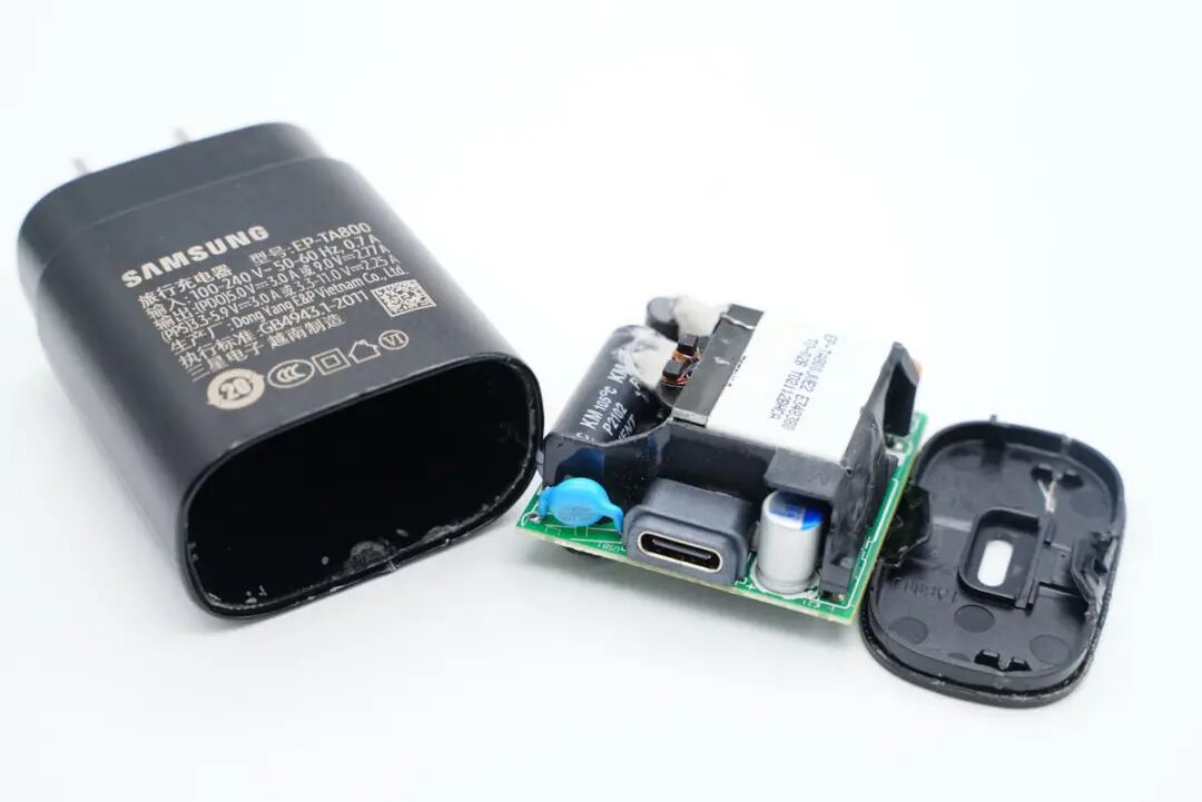 这期就先和大家分享S22标配25W快充的拆解,一起来看看充电器的用料做工如何。