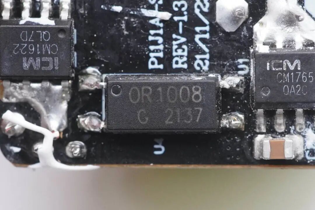奥伦德1008光耦,这是一颗光电隔离器件,通过输入端的电流变化,改变内部发光二极管的发光强度,调节输出端内置光电三极管的导通程度,用于输出电压反馈。