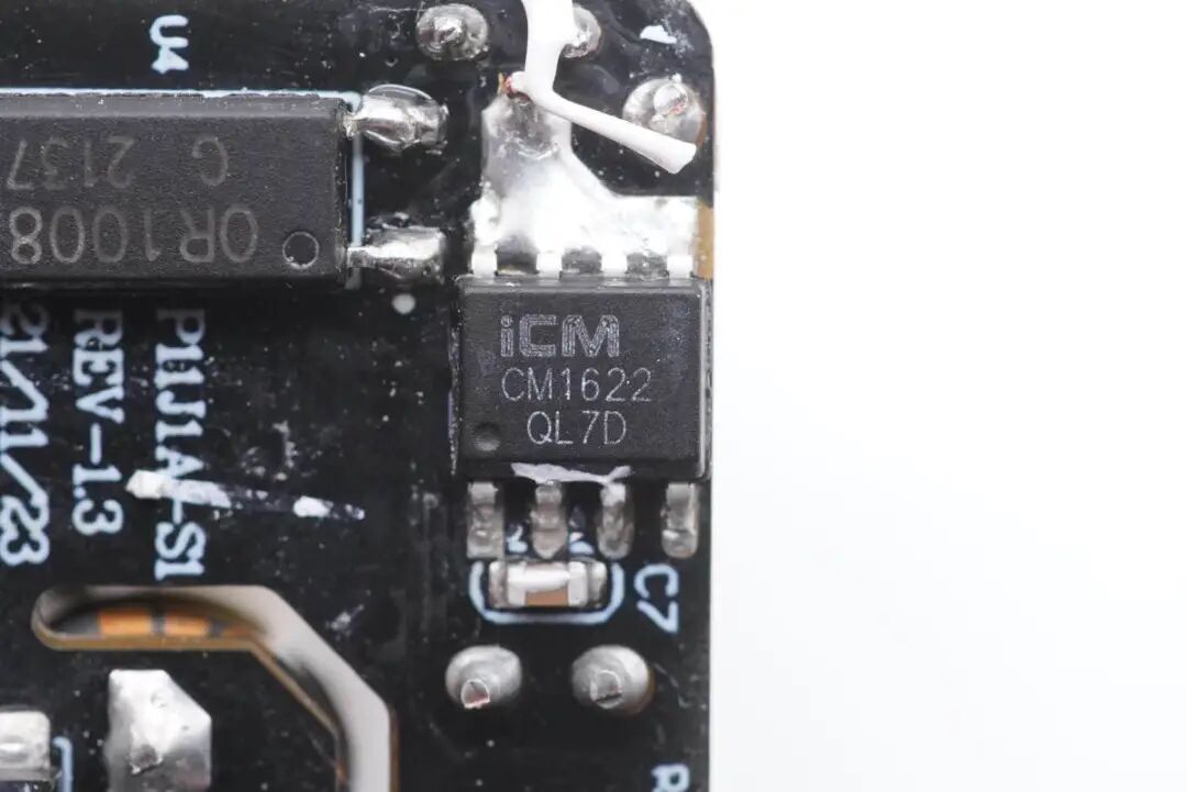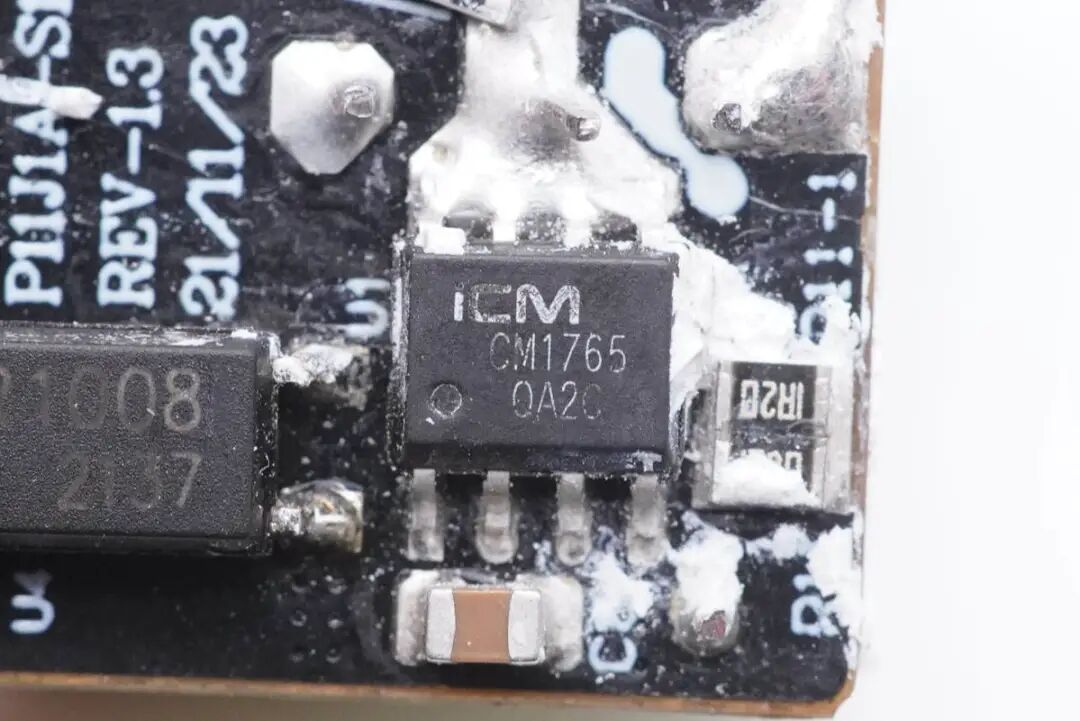 充电器的PWM主控芯片采用的创芯微CM1765,这是一款多模式控制的高性能 SSR 电源芯片,内置 650V 功率 MOSFET,可用于 20W 以内的离线式开关电源产品。CM1765 可根据输入电压,输出电压以及负载的不同控制系统工作在 PWM,PFM,以及 Burst 模式,以实现全电压范围,全负载段的效率最优。