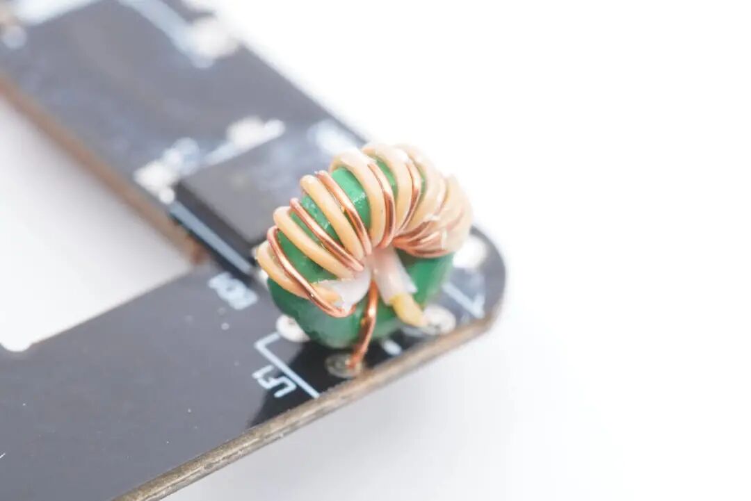 电源模块由两块PCB板垂直焊接组成,内部设有电感、变压器、高压电解电容、固态电容等器件,高压电解电容与固态电容之间设有隔离板做绝缘处理,元器件之间采用硅胶固定。