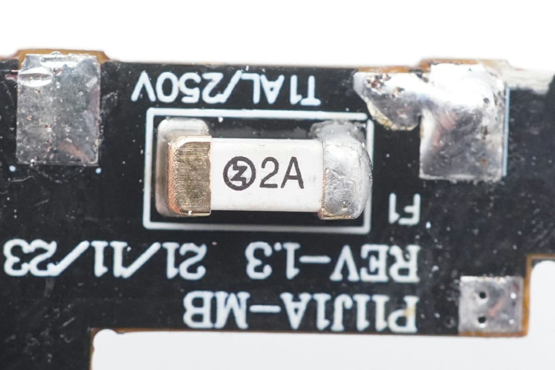 输入端采用了一颗2A保险丝,当电流超过保险丝限定值时,便会熔断切断电路,保障用户安全。