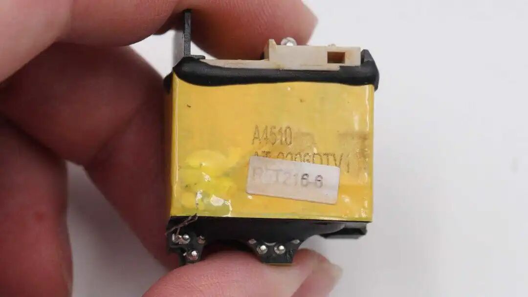 变压器底部,上面是次级输出,下面是初级线圈的引脚,初次级之间采用绝缘板隔离。