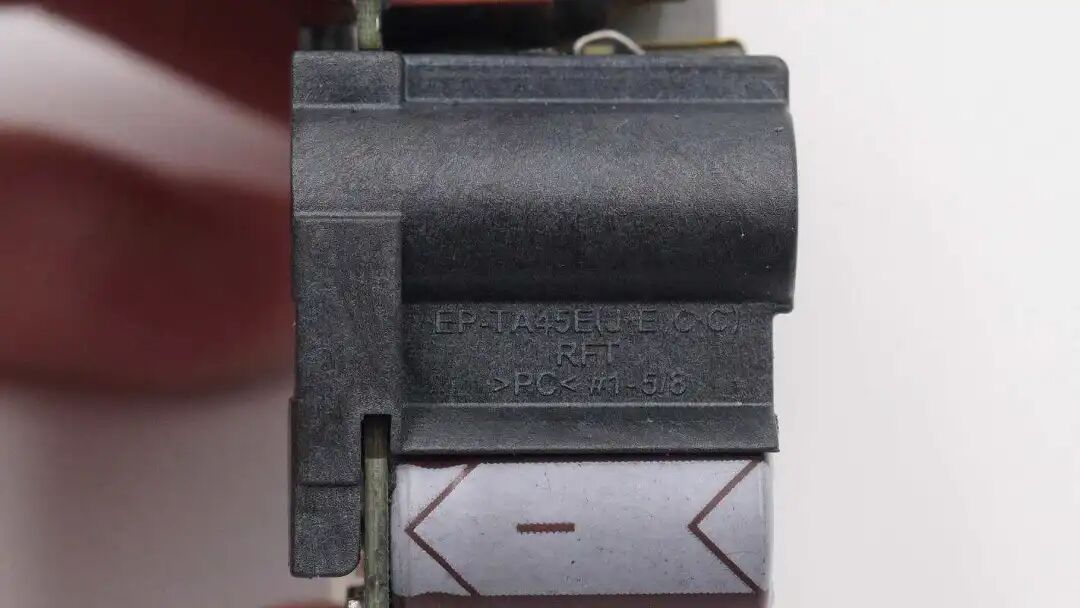 电源输入端子特写,与插脚内部的簧片接触通电。