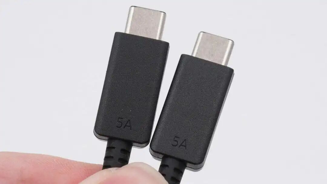 附带线缆是CC线,通体黑色契合充电器,另外也比较耐脏。线头外壳上设计有5A字样,表明线缆可过5A大电流。
