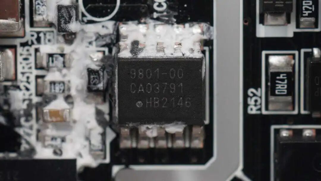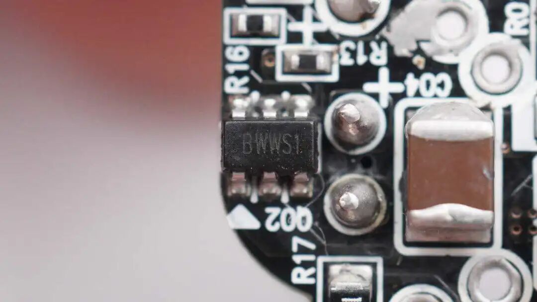 电源方案使用了Dialog iW9801+iW709的零电压开关反激拓扑,采用特有的数字传输,具有电路精简,待机功率低,转换效率高的优势。充电器中主开关管来自纳微,型号NV6014为三星定制型号。充电器内部电容均来自丰宾,长期使用不爆浆,品质可靠。