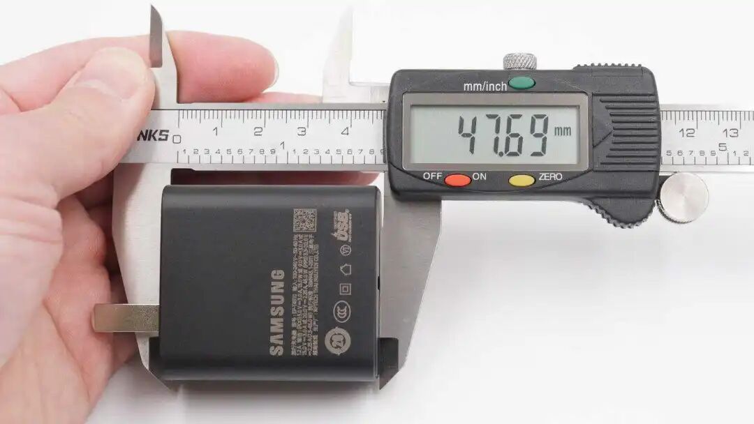测得充电器机身高度为47.69mm。