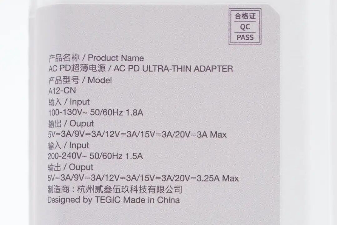 另一部分贴纸上印有产品参数信息,等到下面充电器实物展示时再一起介绍。