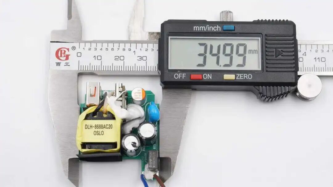 电路板开槽穿过隔离板绝缘,初次级均采用一体化芯片,电路元件精简。
