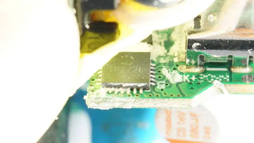 USB PD协议芯片焊接在垂直小板上,INJOINIC英集芯 IP2726,这是一颗集成多种协议、用于USB输出端口的快充IC,支持Type-C DFP、PD2.0/3.0、PPS、QC4+、QC2.0/3.0、FCP、AFC、SCP、MTK PE+、Apple2.4A、BC1.2以及三星2A等协议。具有高集成度和丰富的功能,在应用时仅需极少的外围器件,有效减小整体方案的尺寸,降低BOM成本。