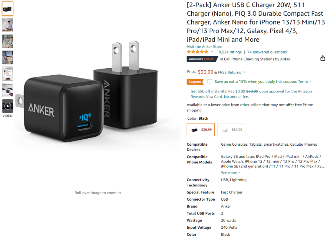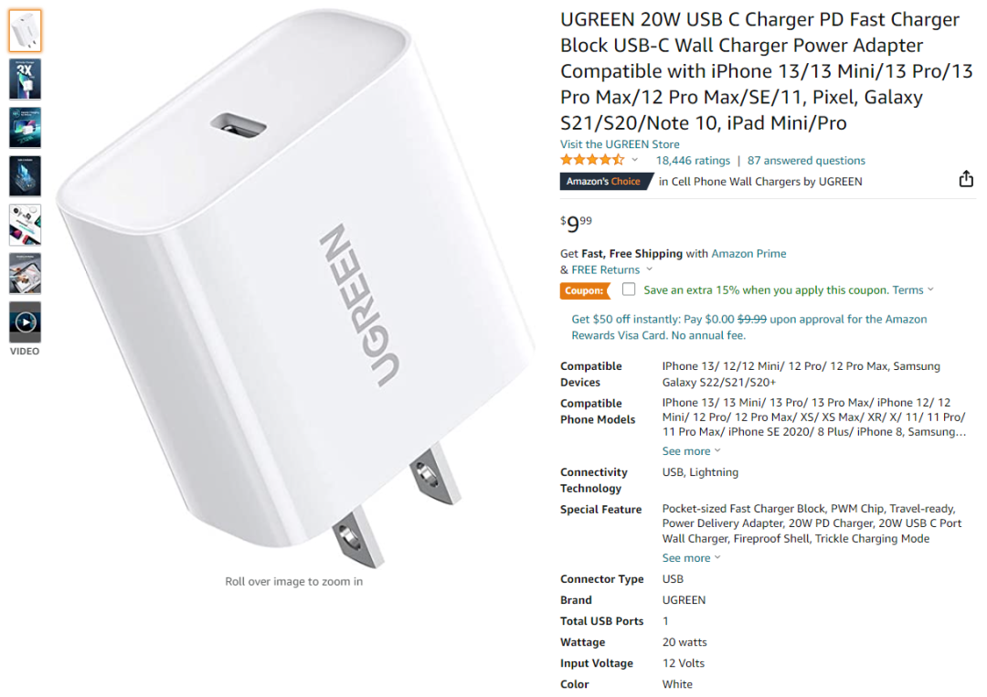 这些产品价格从8.49美元到25.99美元不等,输出功率则是20W居多,下面一起看看这些充电器都有哪些特点吧。