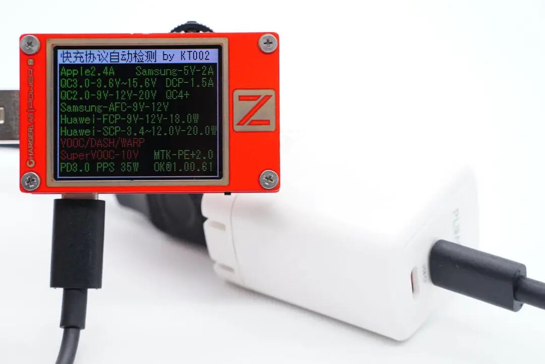 使用ChargerLAB POWER-Z KT002测得USB-C1口支持QC2.0/3.0、AFC、FCP、SCP、PE2.0、PD3.0、PPS快充协议。