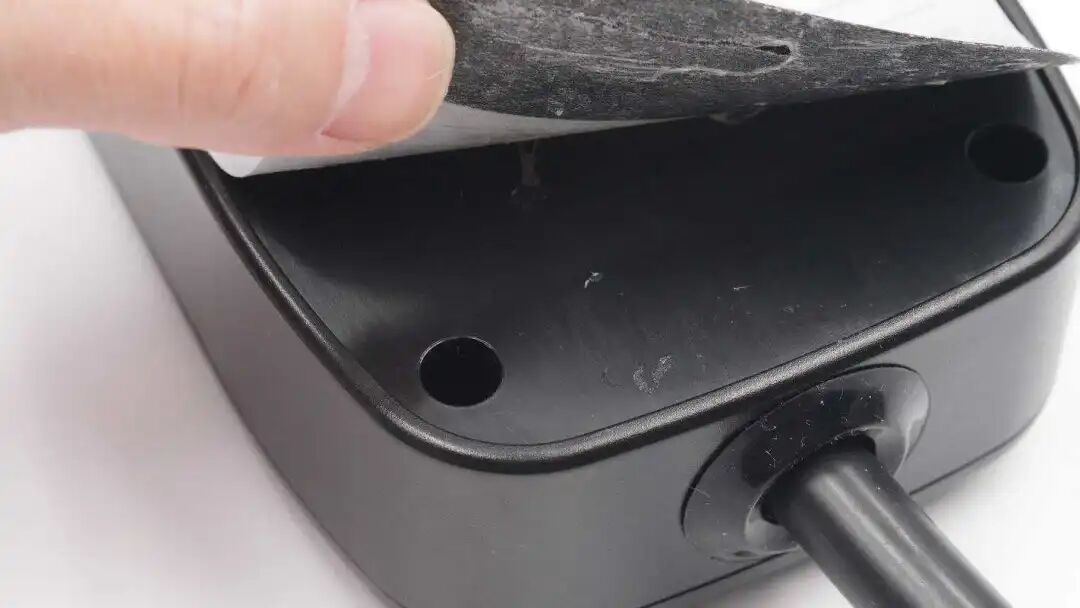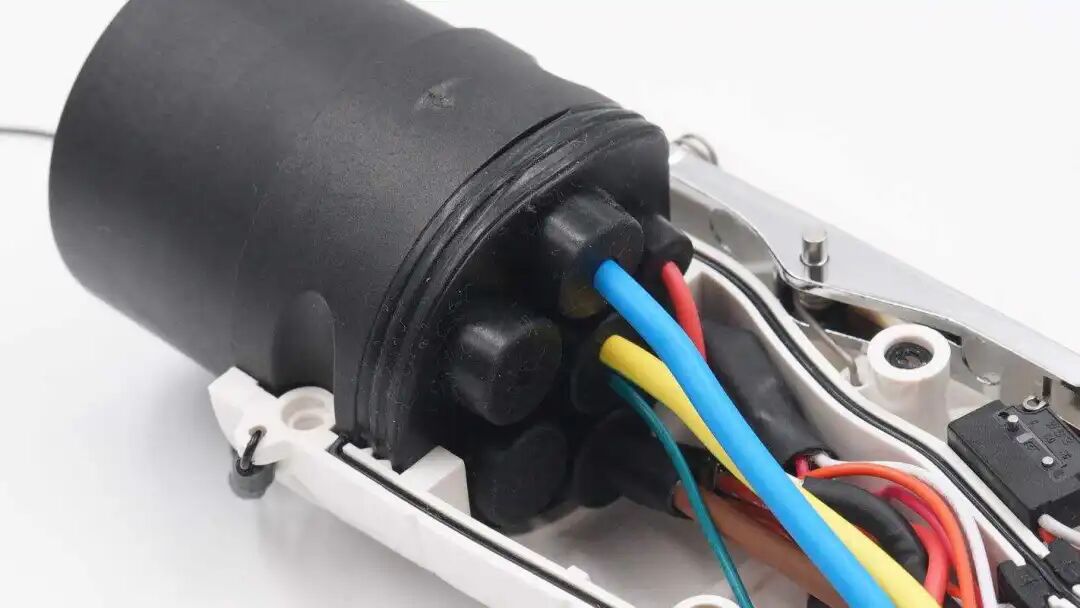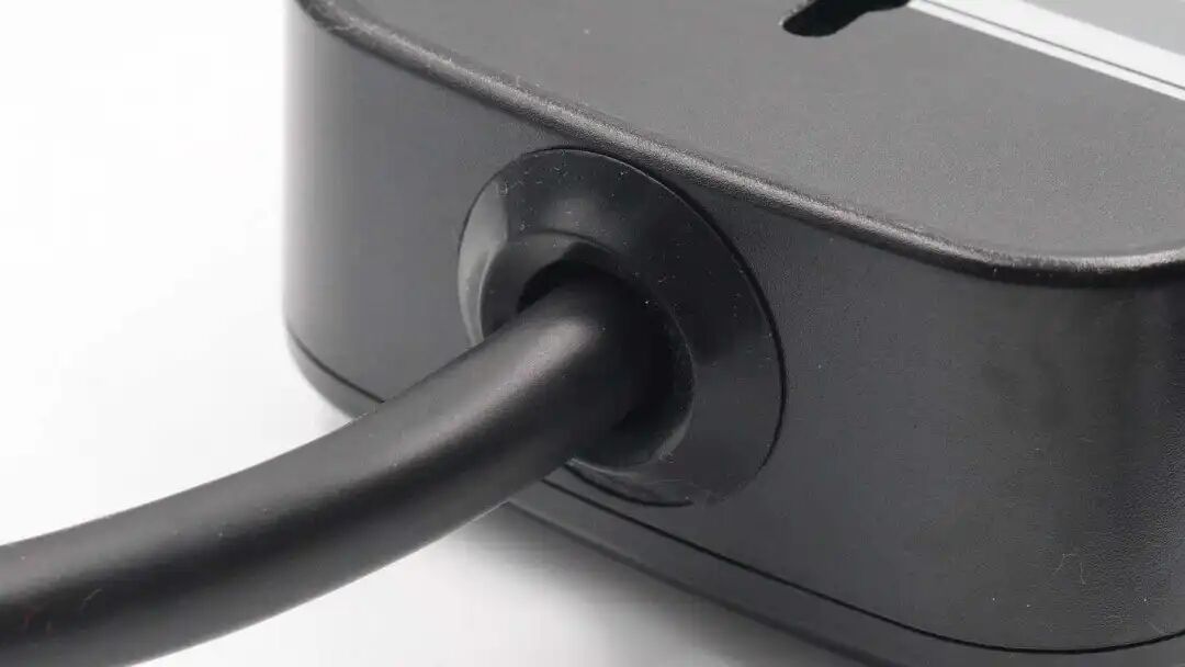 线缆与充电盒交界处设有胶环固定保护。