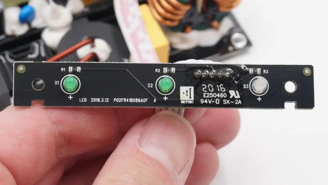 小板上焊接电源指示灯、充电指示灯和故障指示灯。