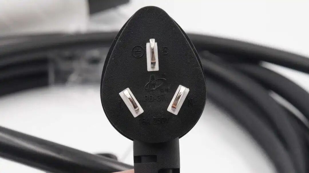 插头采用水滴造型设计,内侧在插脚旁都设计有地线、火线、零线标识,规格为16A 250V~。