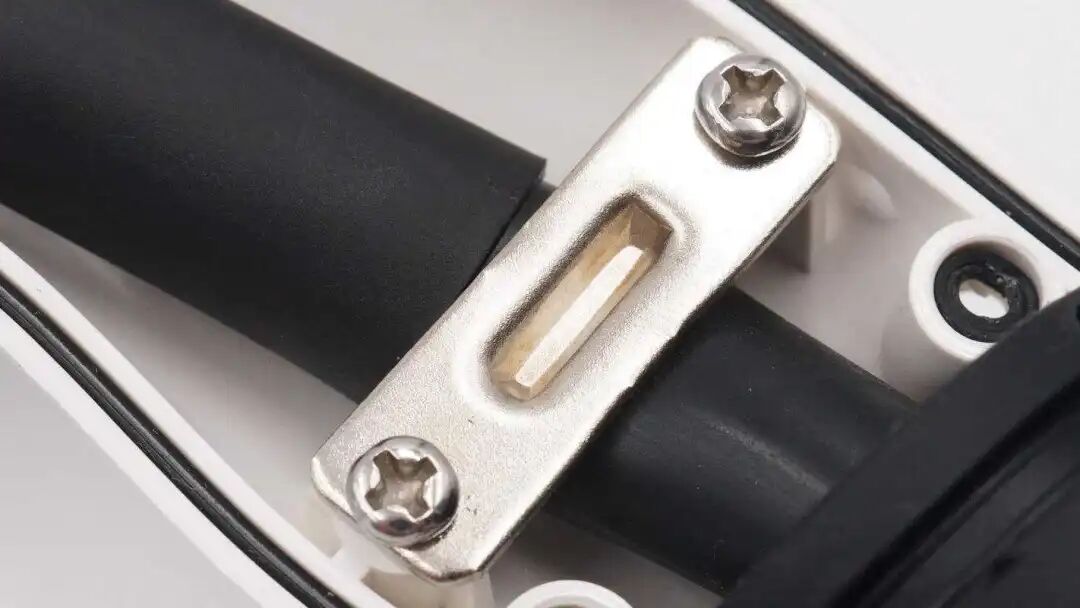 线缆使用金属片压紧固定。