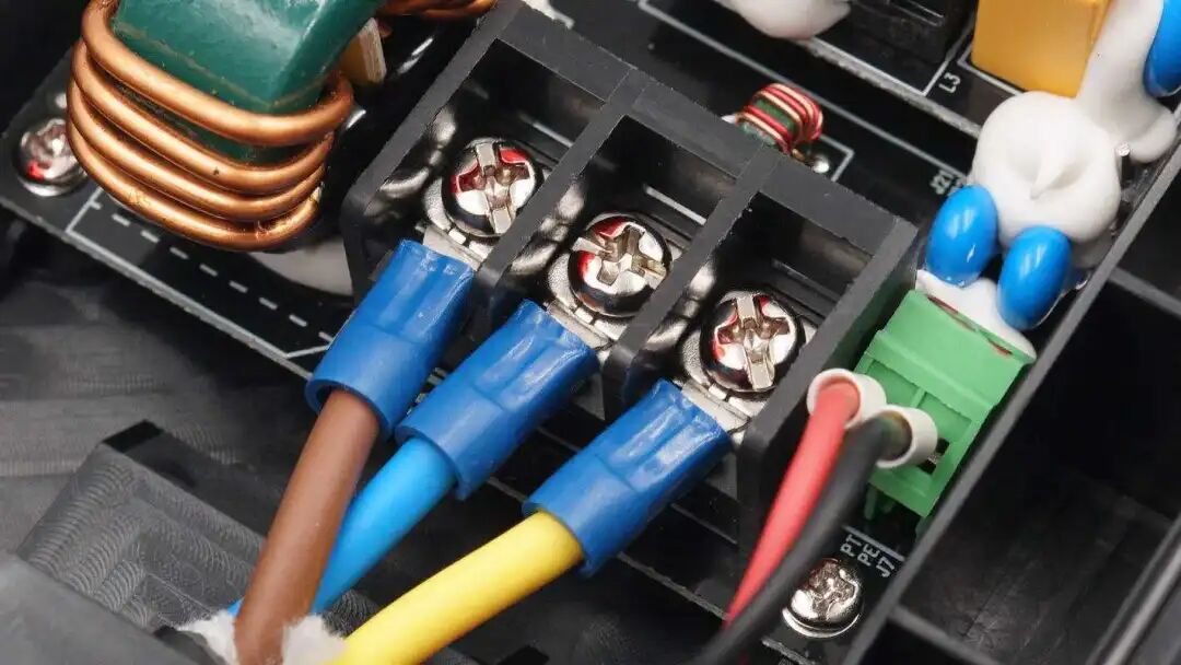 输入端子特写,使用螺丝固定在接线端子上。
