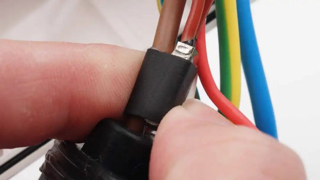 导线冷压端子固定。