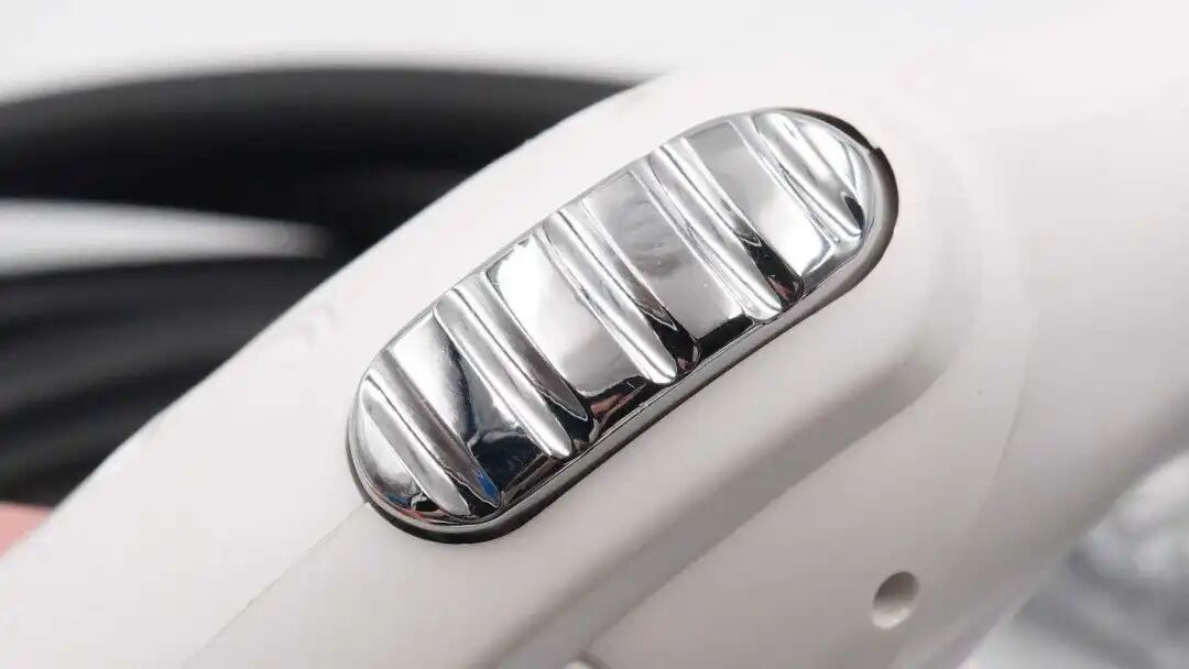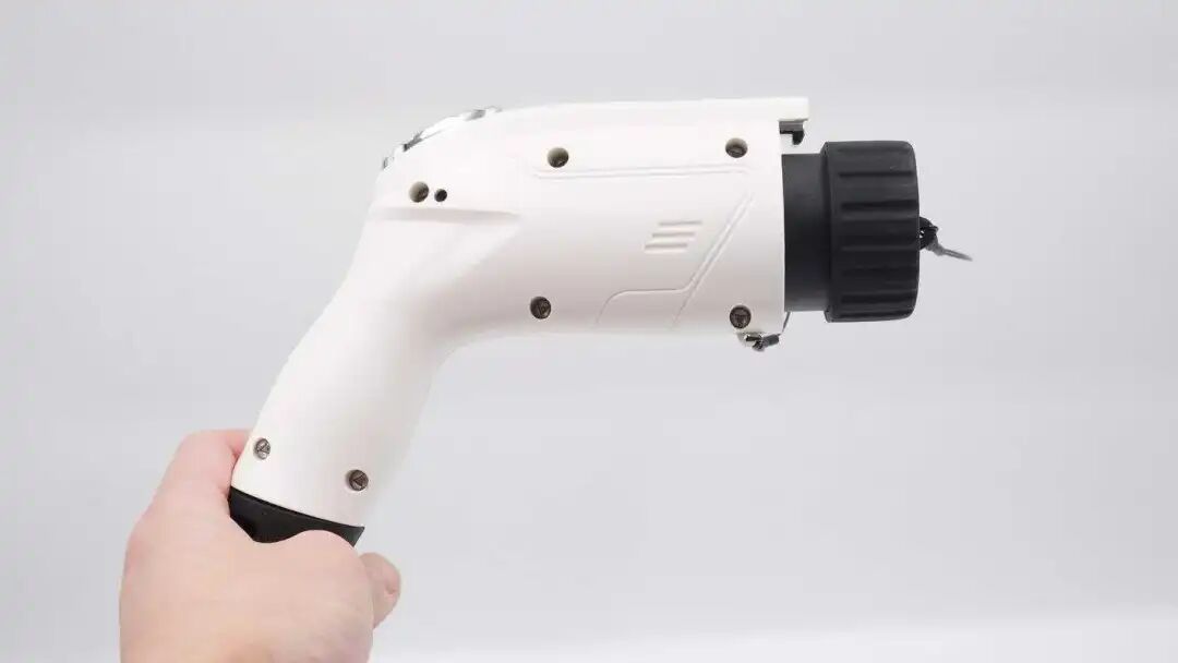 充电枪头主体外壳为白色,表面磨砂处理,造型符合人体工学设计,提升用户的使用体验