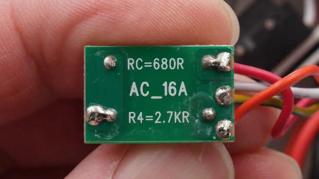 两颗电流互感器,分别用于零序电流检测和充电电流检测。穿过两根铜线的互感器为零序电流检测,用于漏电保护功能,单根铜线的为电流检测,用于充电过程中的保护功能。