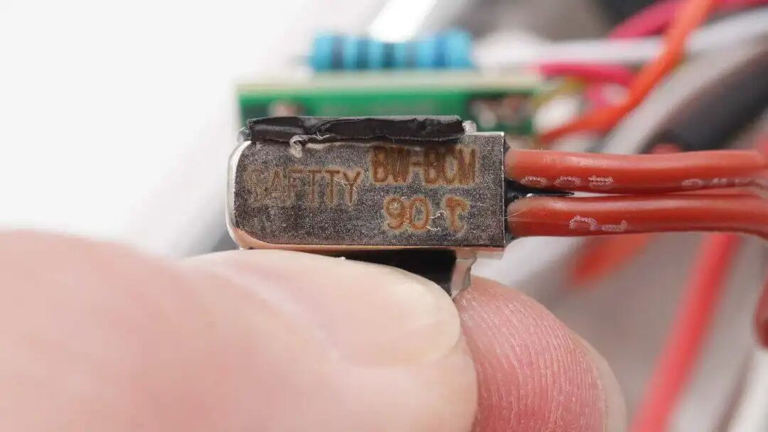 火线上有一颗温度保险,使用热缩管固定。