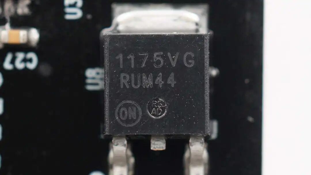 ON安森美 丝印1175VG,实际型号为NCV1117-5.0,三端线性稳压芯片,用于充电枪内部芯片供电。