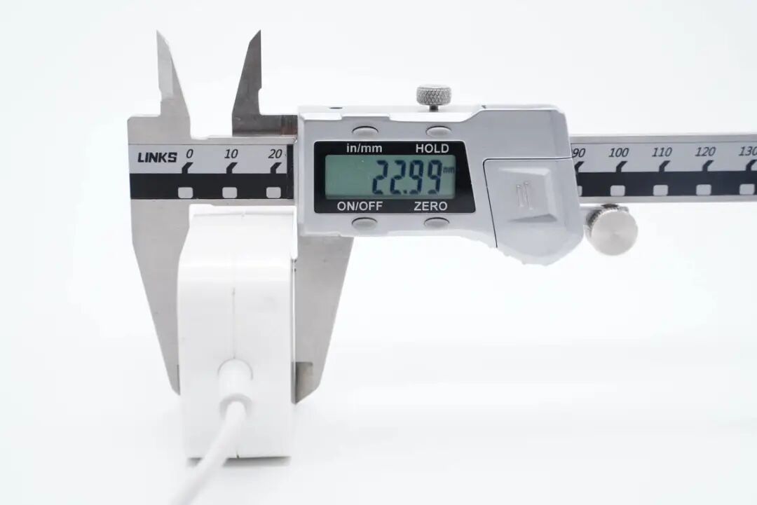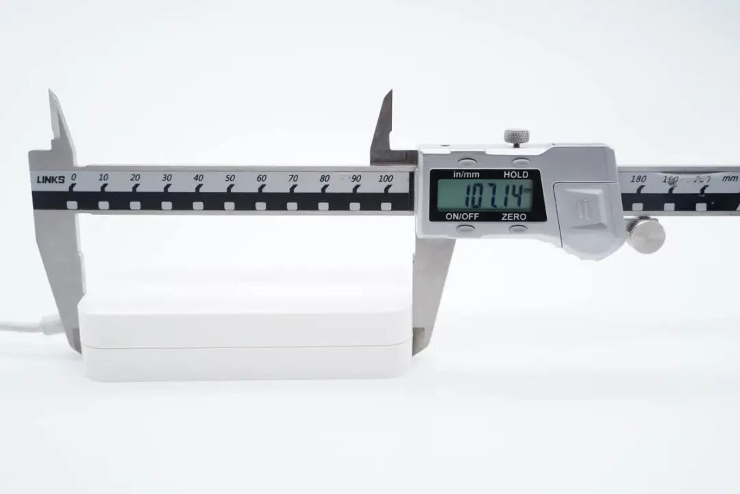 测得适配器机身长度约为107.14mm。