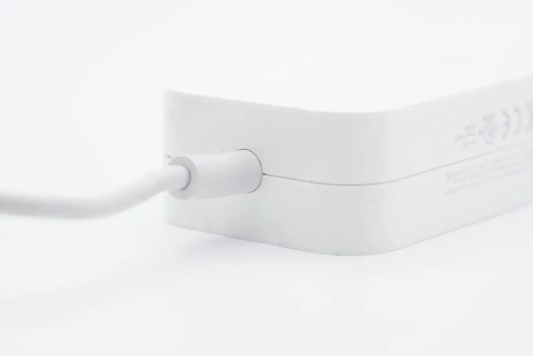苹果这款适配器机身长条扁平造型设计,另外自带DC圆头输出线缆,整体风格也是十分的简约。