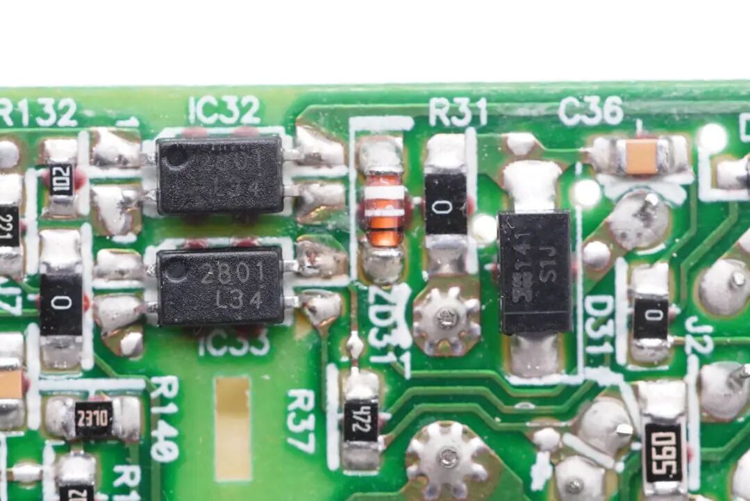 两颗光耦用于输出电压和电流反馈。